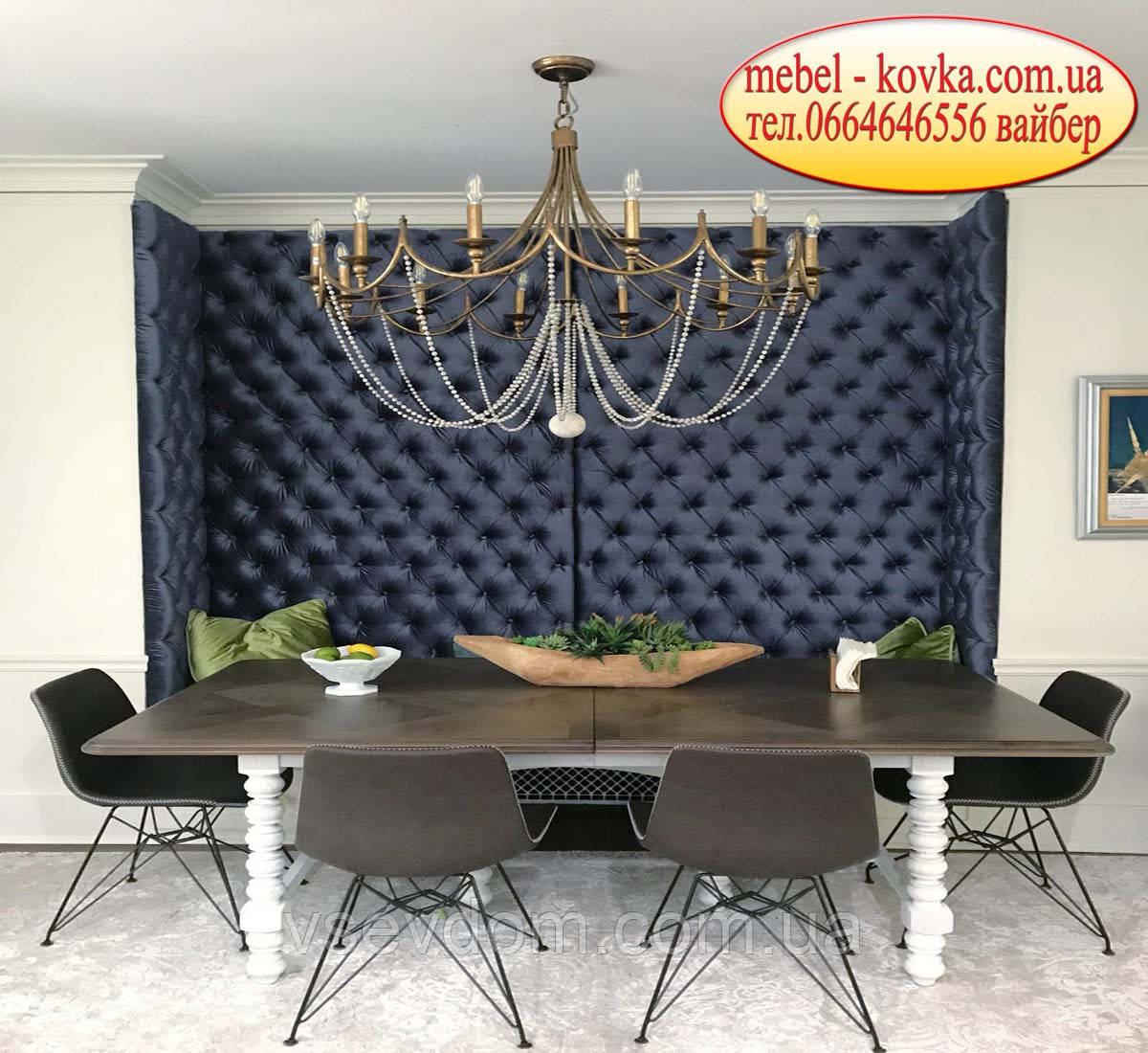 Узголів'я з каретною стяжкою мають сучасний вид внутрі оформлення відмінність стилів . Великий вибір декоративного оздоблення панелей можливо вибрати по фото у нашому інтернет-магазині. Залежно від огляду складових, ідей та ціни за своїм смаком . Текстильна частина кріпиться на дошку МДФ та встановлюється в квартирі за бажанням замовника.